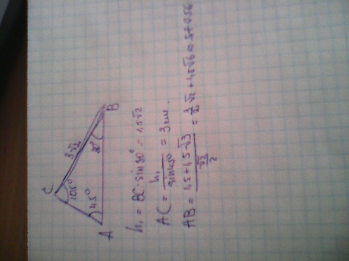 решите треугольник АВС если угол В=30 градусов, угол С=105 градусов, ВС= 3 корня из 2см.
