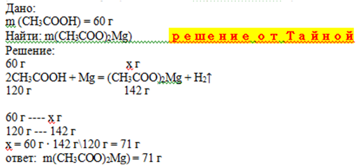 рассчитайте массу ацетата магния образовавшийся при взаимодействии 60г уксусной кислоты