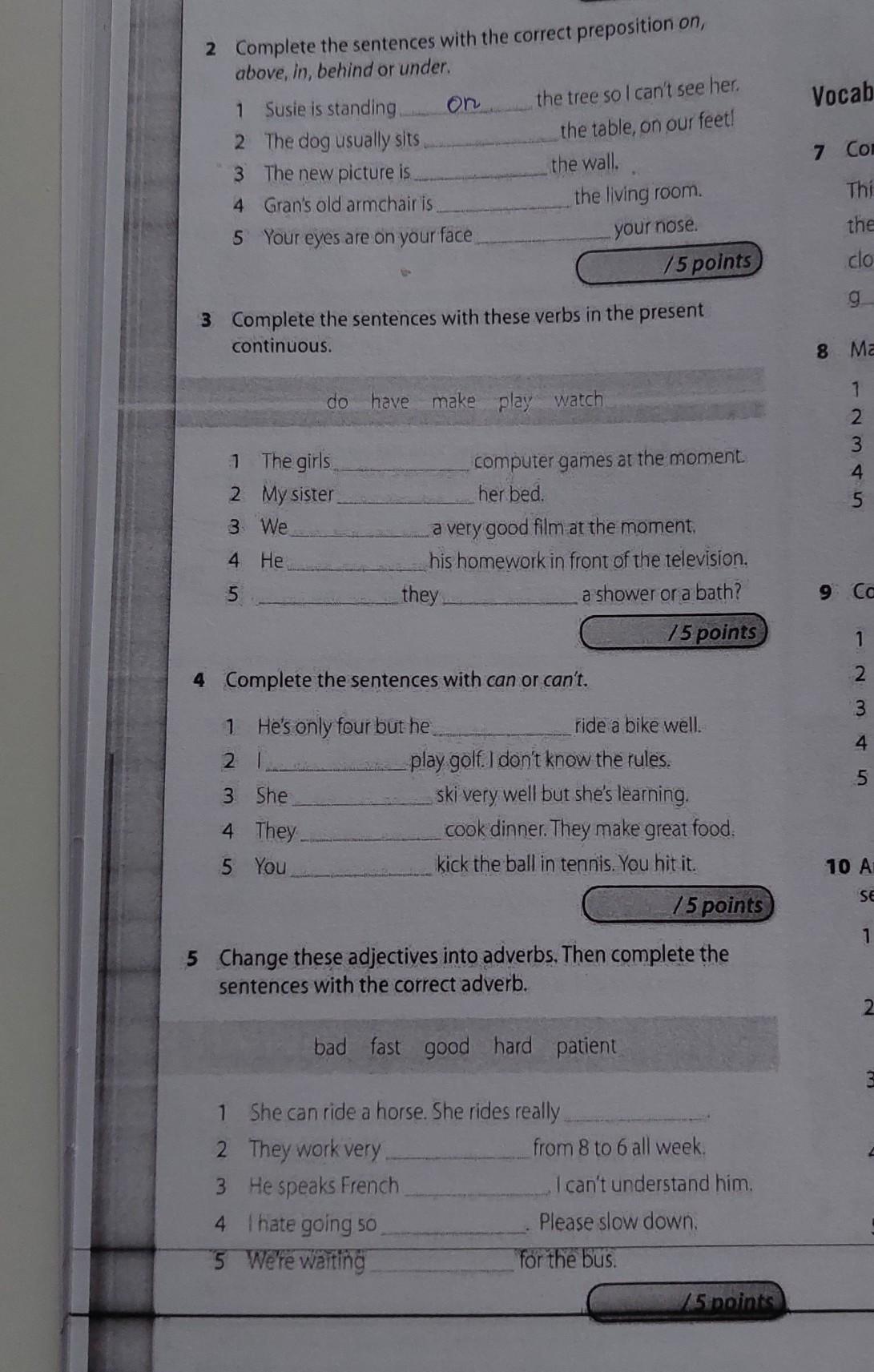 2 Complete the sentences with the correct preposition on, above, in, behind or under.