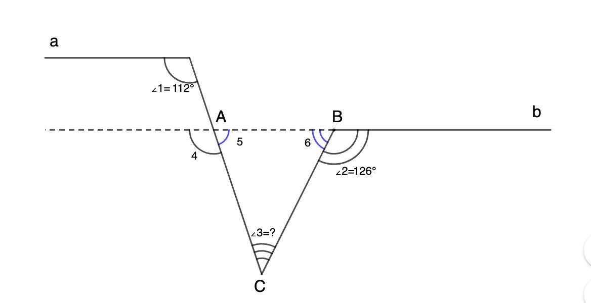 Найти ∠3, если a || b, ∠1 = 112°, ∠2 = 126°.