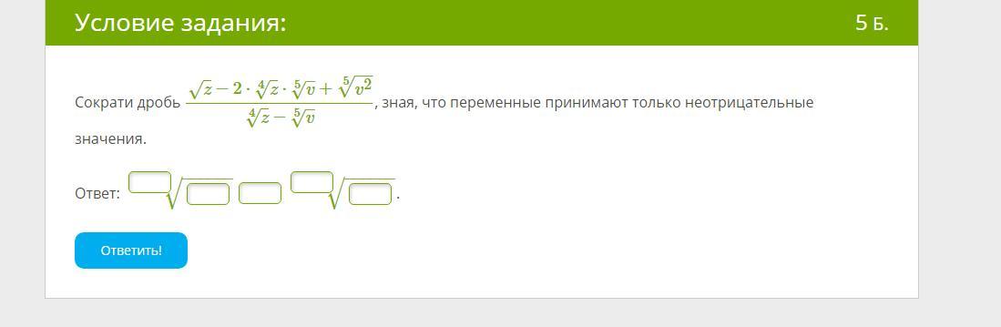 =(⁴√(z)-⁵√(u))²/(⁴√(z)-⁵√(u))=⁴√(z)-⁵√(u)