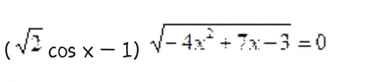 (√2*cosx-1)*√(-4x²+7x-3)=0