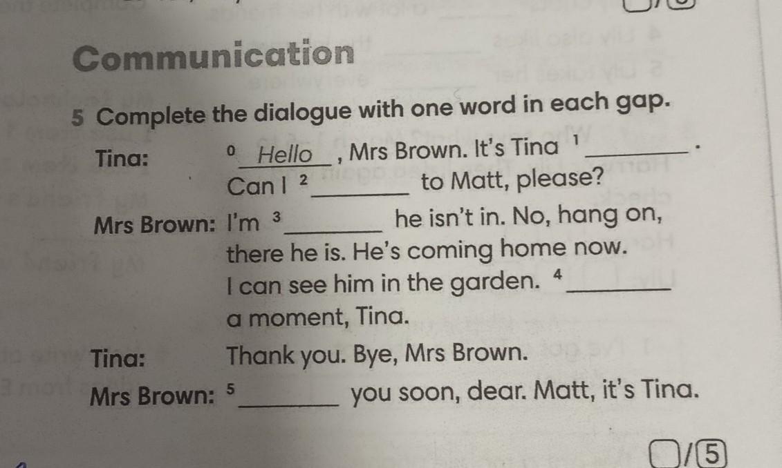 Tina: 0 Hello, Mrs Brown. It's Tina ¹ Can1 2 to Matt, please?