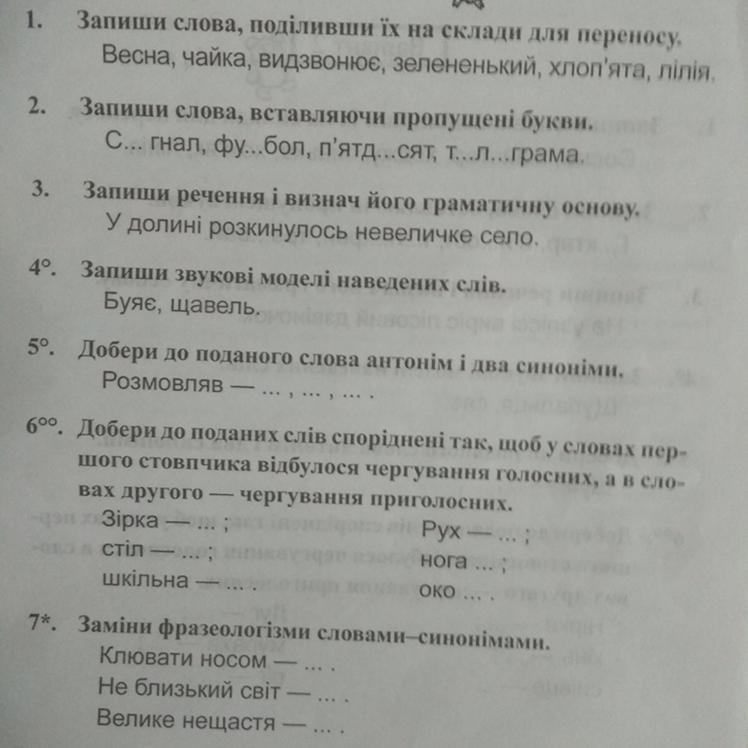 1) Вес-на, чай-ка, видз-во-нює, зе-ле-нень-кий, хло-п'я-та, лі-лія.