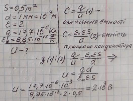 заряд 17,7·10-6 Кл. Визначити різницю потенціалів між