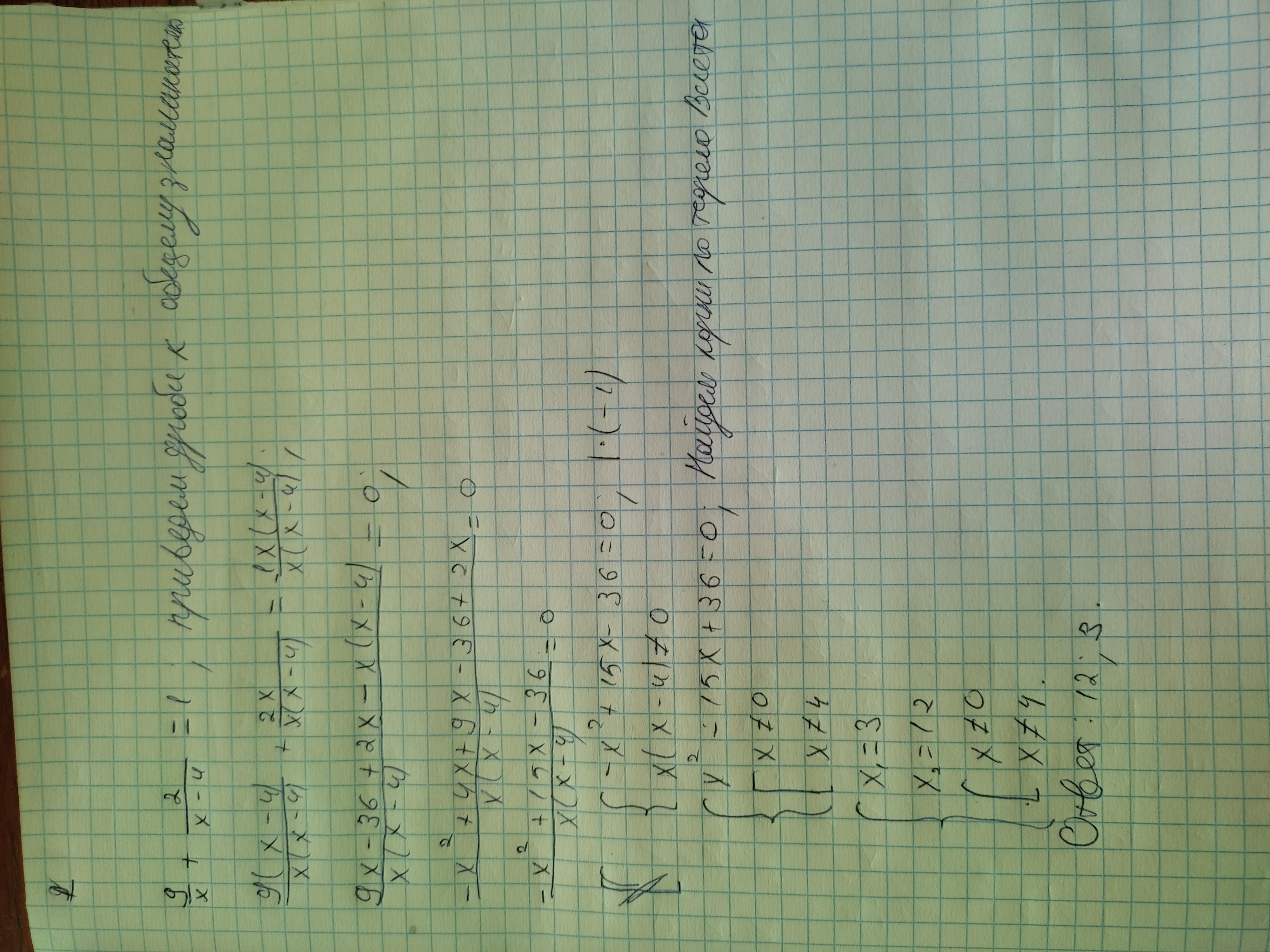 D = 15² - 4 * 36 = 225 - 144 = 81