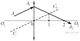 Собирающая линза преломляет луч (см. рисунок). Какая точка соответствует главному фокусу линзы?