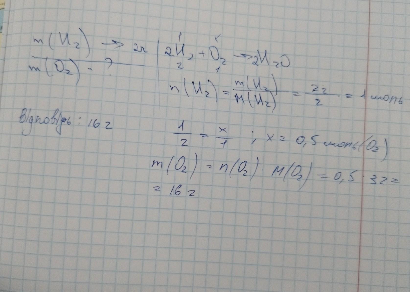 16г o2 витратили на спалення h2