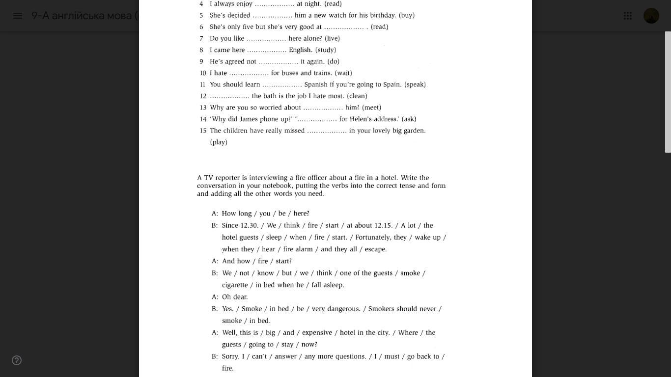 B: Since 12.30. We think the fire started at about 12.15. A lot of the hotel guests were sleeping when the fire started. Fortunately, they woke up when they heard the fire alarm and all they escaped.