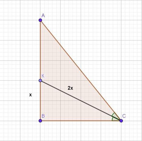 Пусть КВ= х см, тогда КС= 2х см.