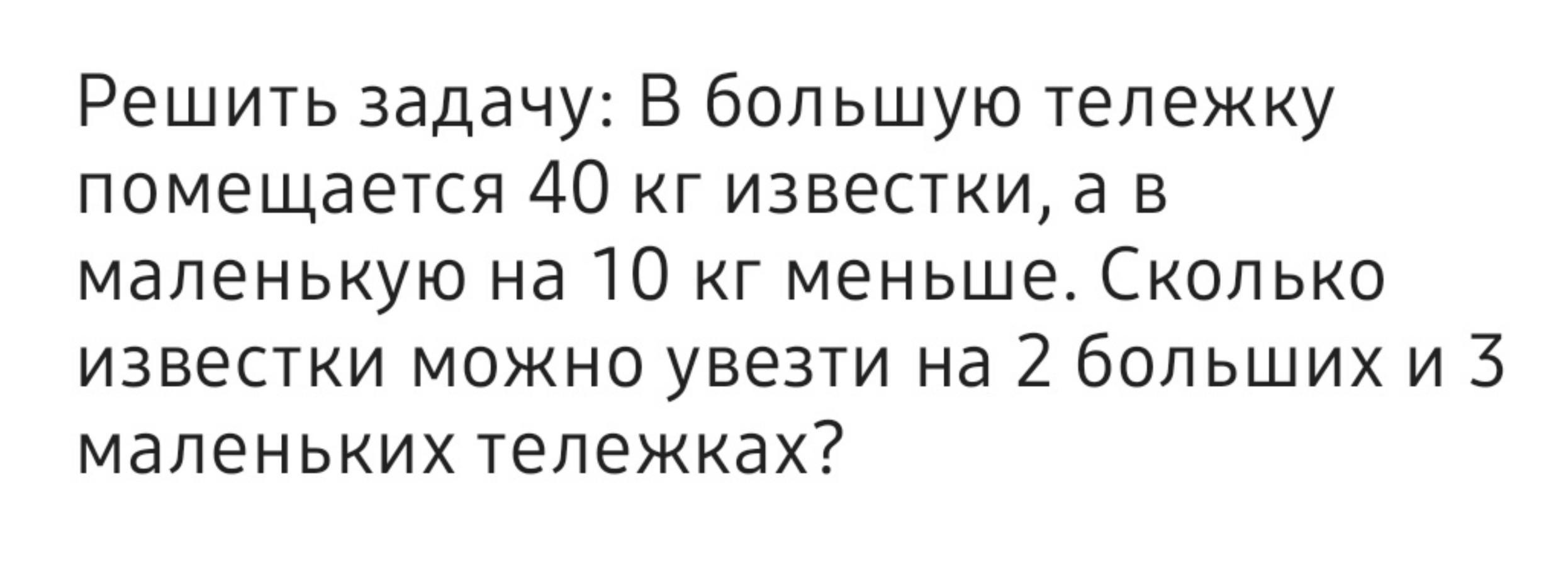 1) 40*2=80(кг) 2) 40-10=30(кг) 3) 30*3=90(кг) 4) 90+80=170(кг)