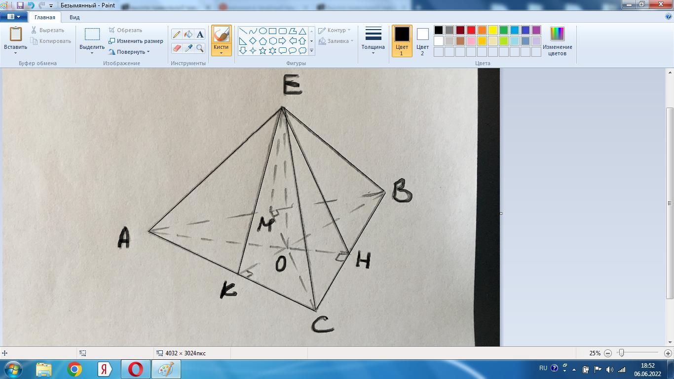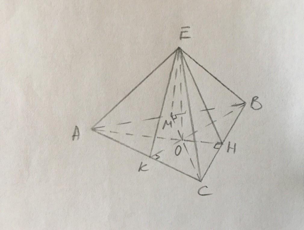 Тогда ∠ЕКО=60° - угол между боковой гранью и основанием.