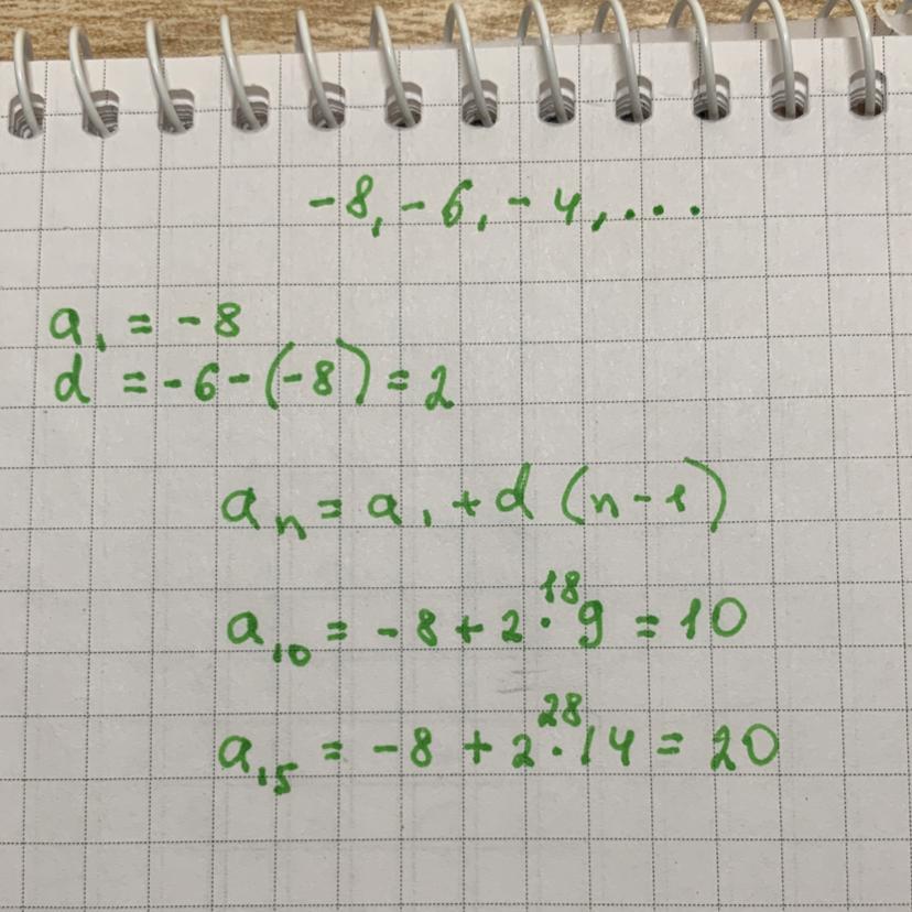знайдіть а10 і s15 для арифметичної прогресії -8,-6,-4