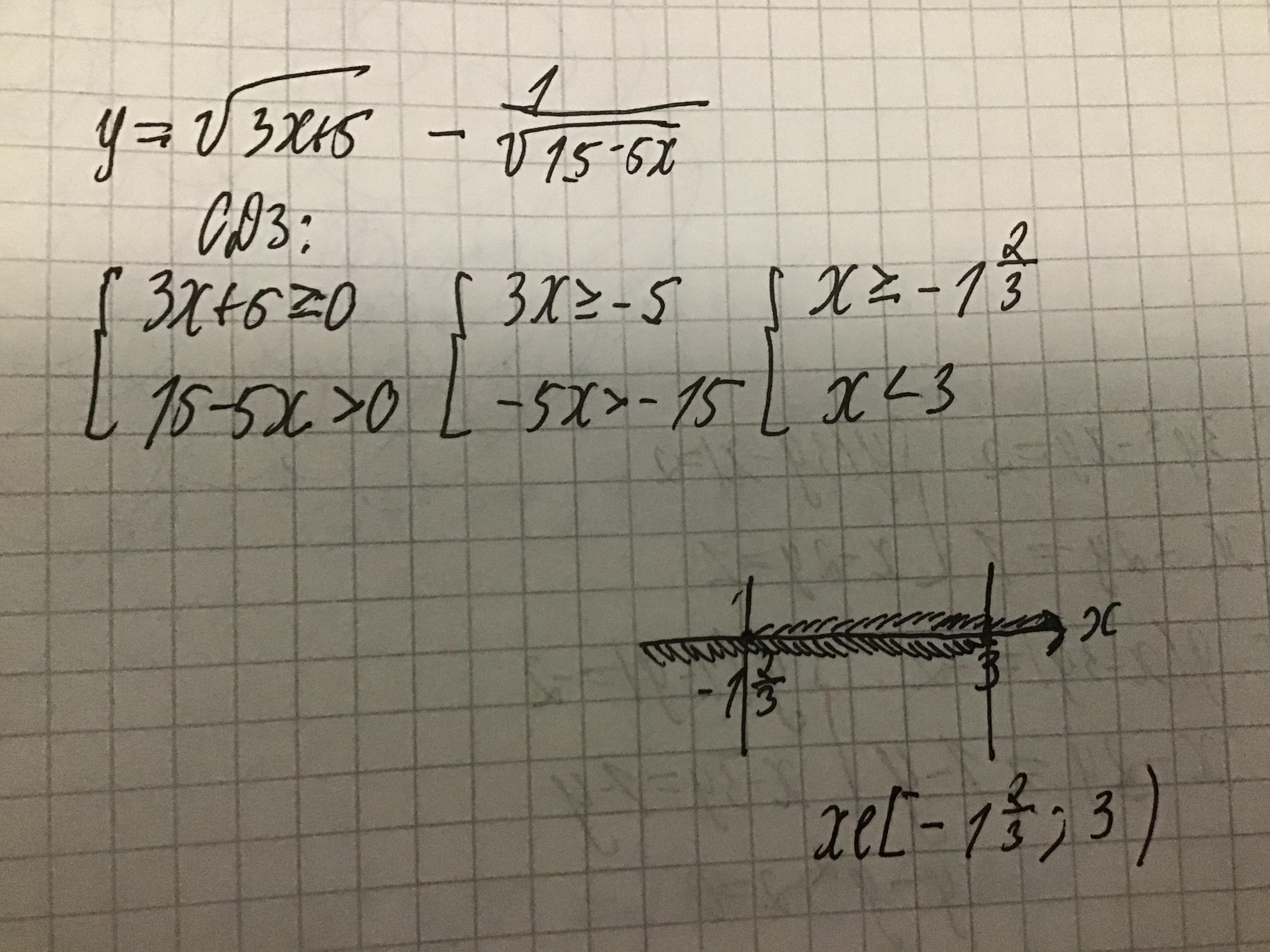 из первого слагаемого х больше или равно -5/3. из второго х меньше 3
