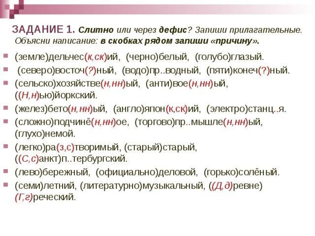 Слитно пишутся сложные прилагательные