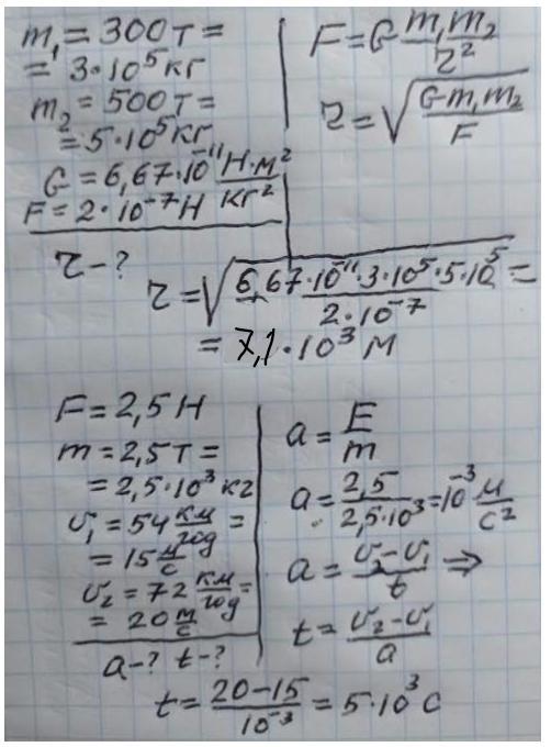 . Під дією сили 2.5 Н швидкість автомобіля масою 2,5т збільшилась від 54 км/год до 72 км/год. Визначте прискорення з яким рухався автомобіль і час розгону.