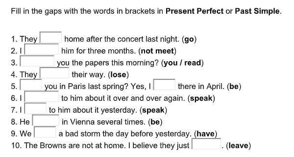 5 Were you in Paris last spring? Yes, I was there in April. (указано время в прошлом, поэтому используется Past Simple)