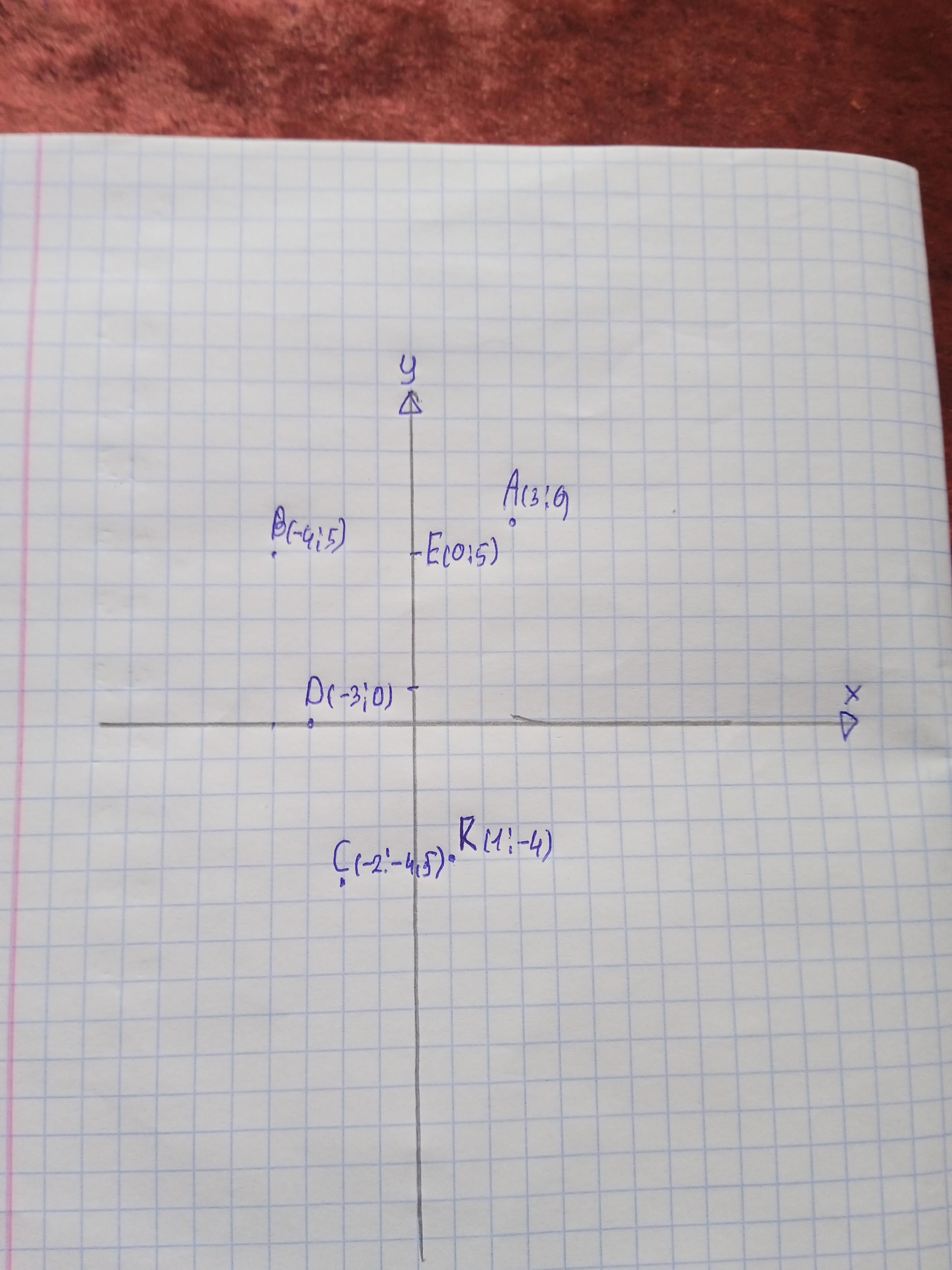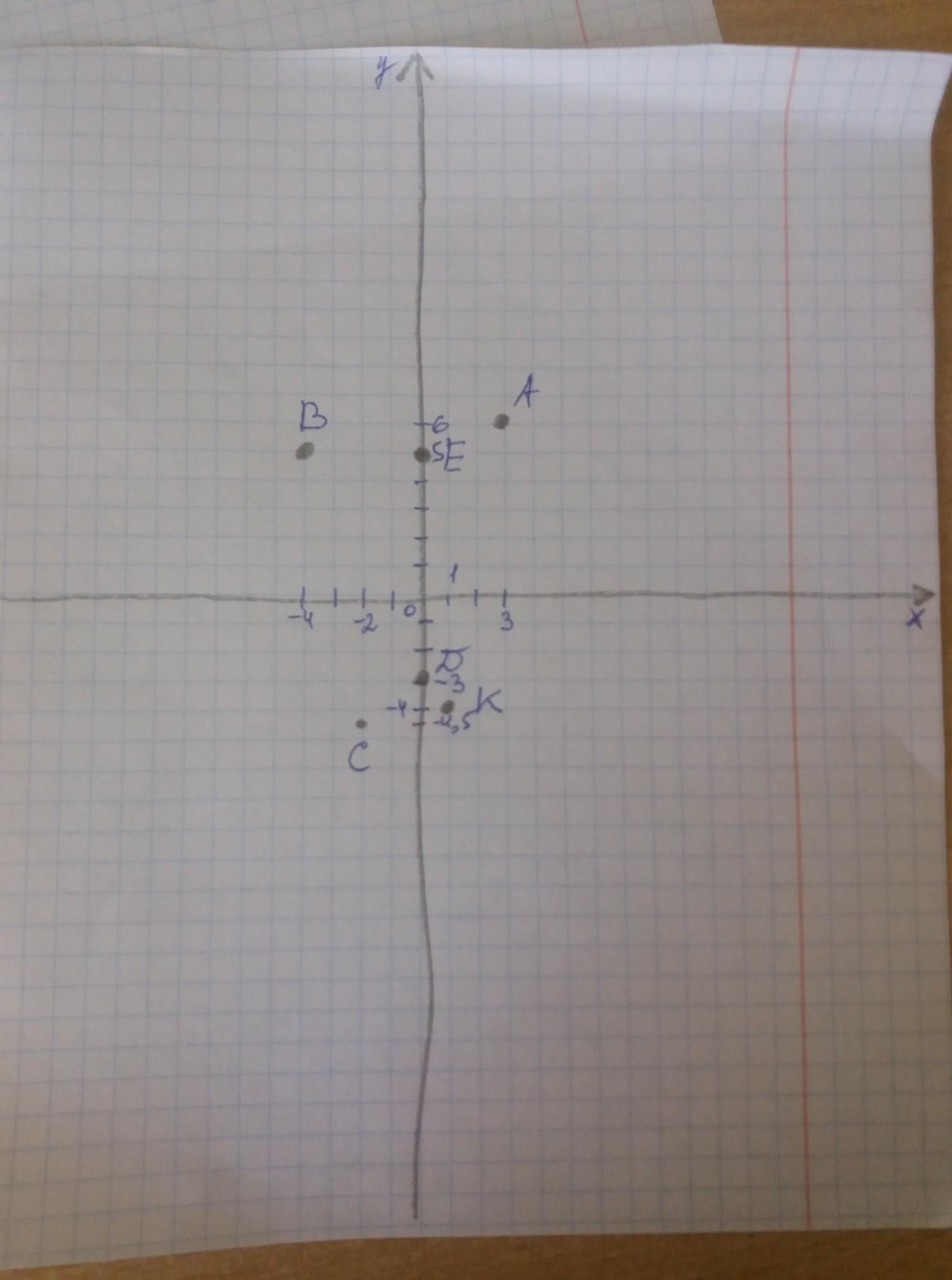 На кординатній площині позначити точки А(3;6), В(-4;5), С(-2; -4,5), D(-3;0), Е(0;5), К(1,-4). ПОЖАЛУСТА СРОЧНО