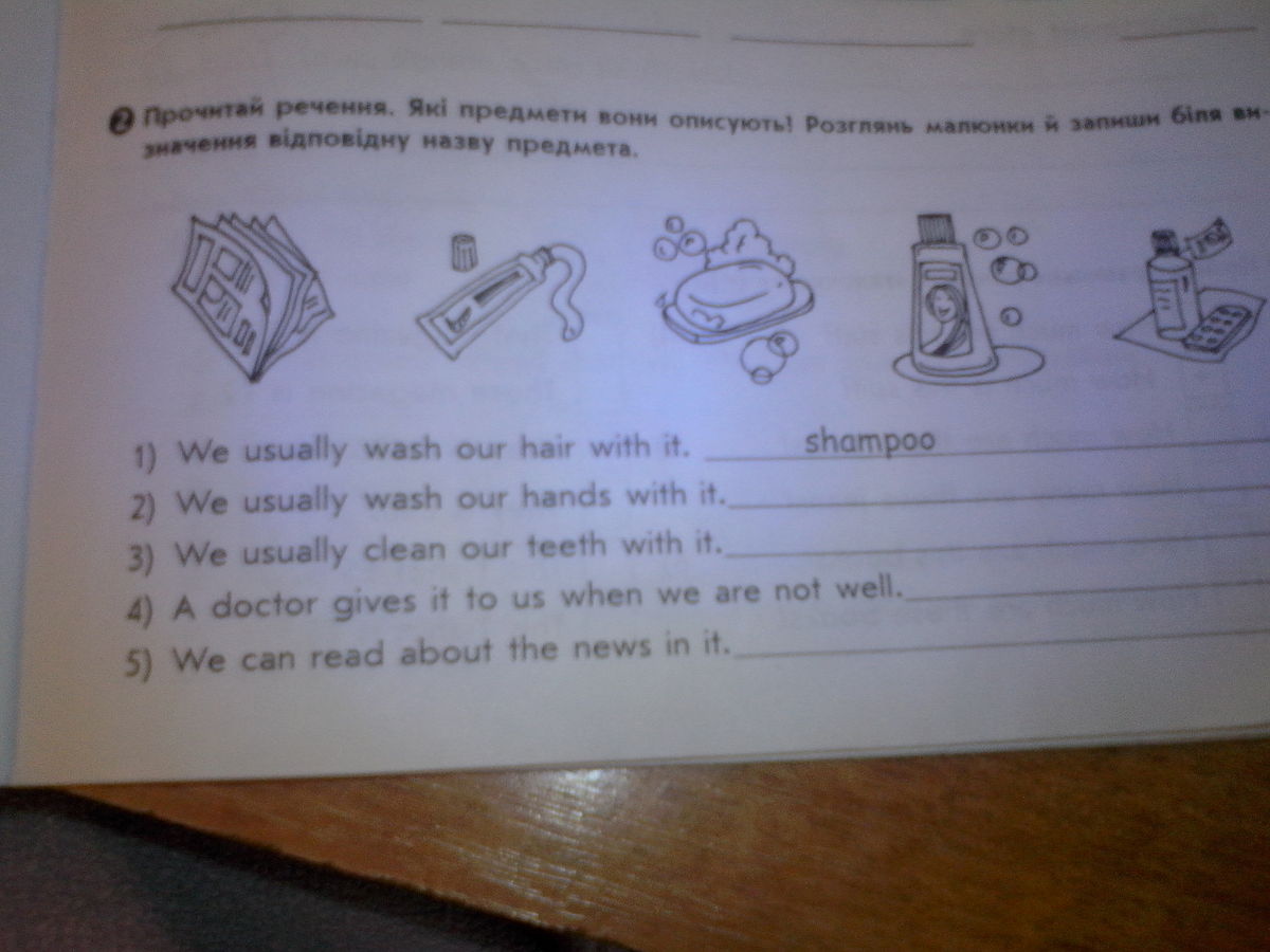 2)soap 3)toothpaste 4)remedies 5)newspaper