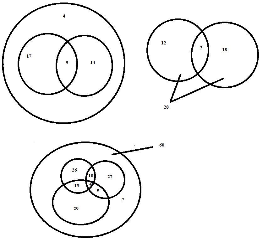 1. 17 учнів класу мають відмінні оцінки з природознавства, 14 – з історії, а 9 – і з природознавства і з історії. Скільки учнів в класі, якщо 4 учні взагалі не мають відмінних оцінок з цих предметів?