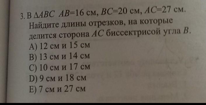 Пусть биссектриса ВЕ. Биссектриса делит противоположную сторону на части, пропорциональные прилежащим сторонам. АВ/ВС=16/20=4/5.
