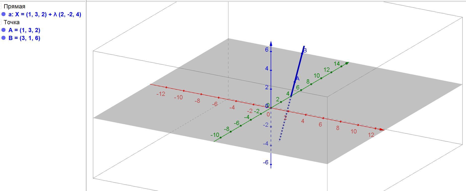 Прямая пересекает точки А(1;3;2) и B(3;1;6)