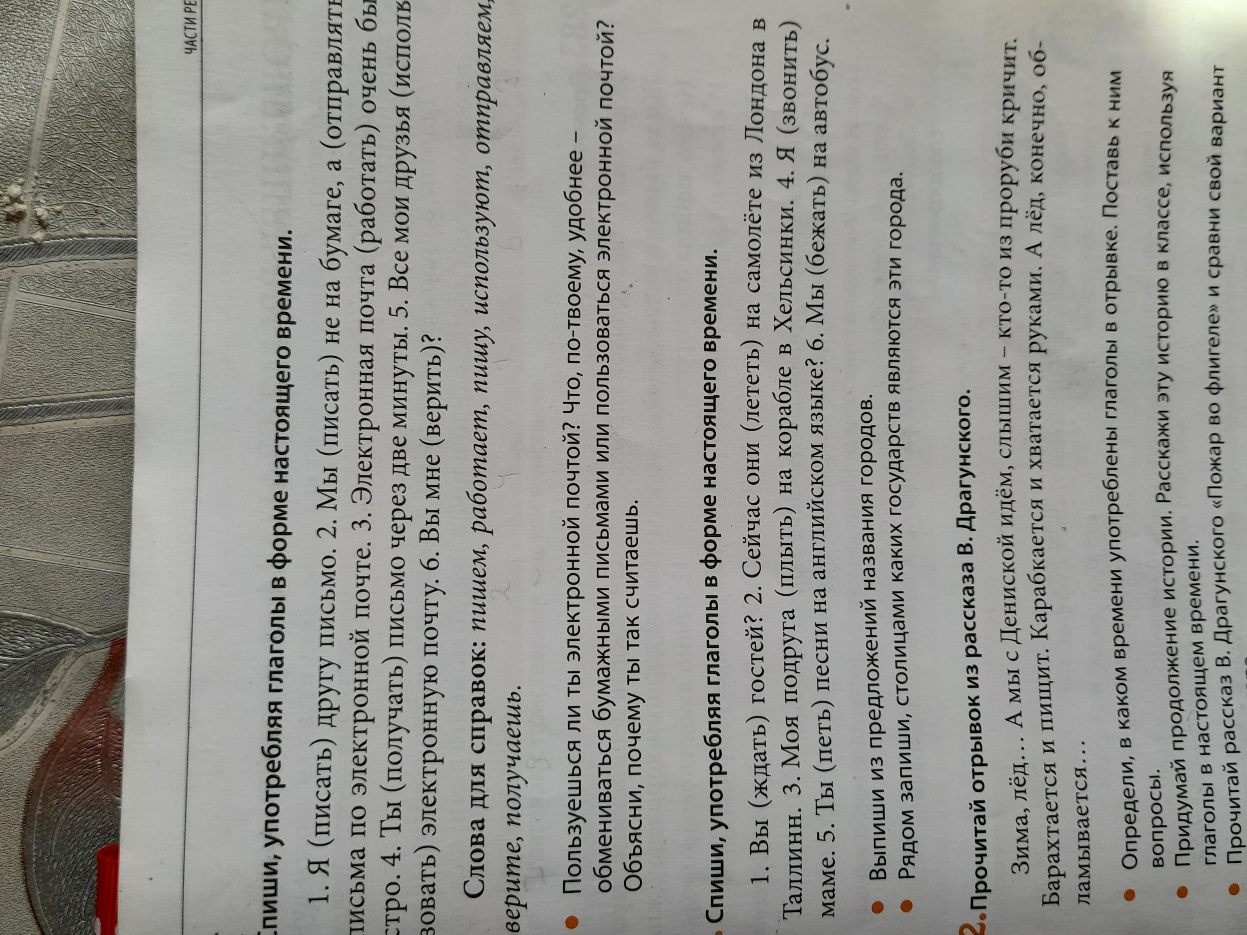Спиши,употребляя глаголы в форме настоящего времени. Выпиши из предложений названия городов. Рядом запиши,столиками каких государств являются эти города.Упражнение281.