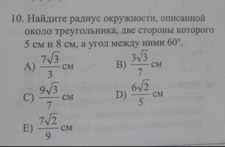 В ΔАВС АВ = 5 см ; АС = 8 см ; ∠А = 60° . R - ?