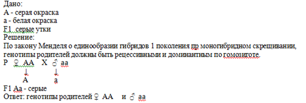 При скрещивании 2 пород уток домашних между собой,все потомство было серым.(при условии ,что серый цвет доминирует,а белый-рецессивный)какой генотип имели родители?
