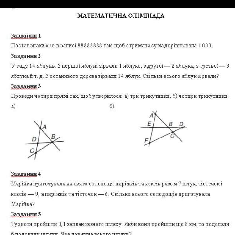 2) 1+2+3+4+5+6+7+8+9+10+11+12+13+14=105 яблук зірвали з 14 яблунь.