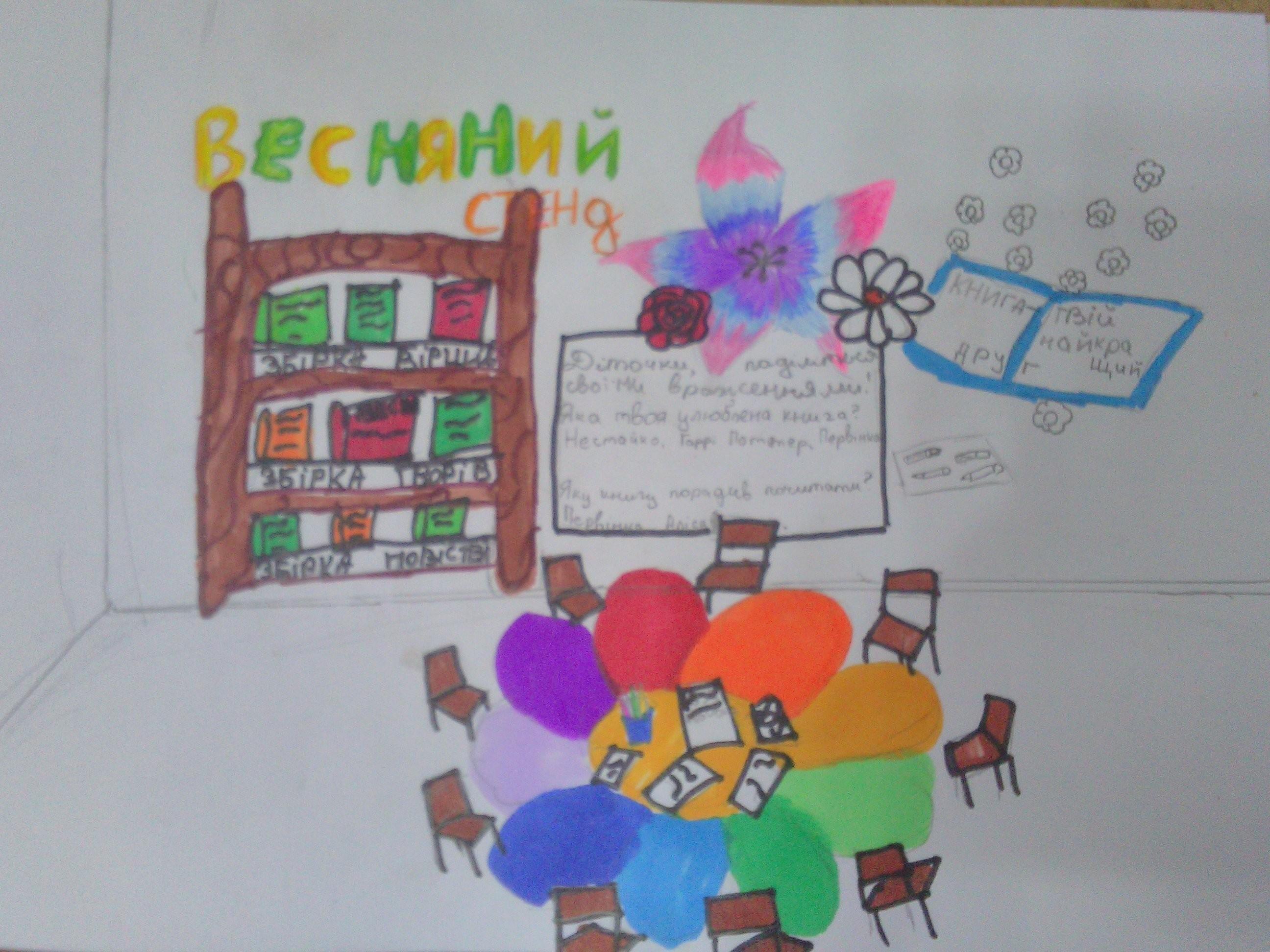 Щоб були якісь приказки, про книги , різні стенди, і так далі, але найбільше, що я хочу ще щоб була така дочка, і діти писала свої враження по твори, так буде легше, вибирати книги, або були такі кімнати, щоб можно було с людиною(подругою і так далі), взяти одну книгу й піти в цю кімнату й ділитися своїми почуттями.