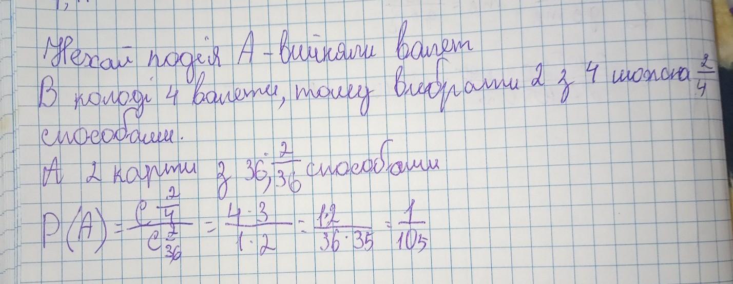 З колоди, що містить 36 карт, вийняли навмання 2 карти. Знайдіть імовірність того, що