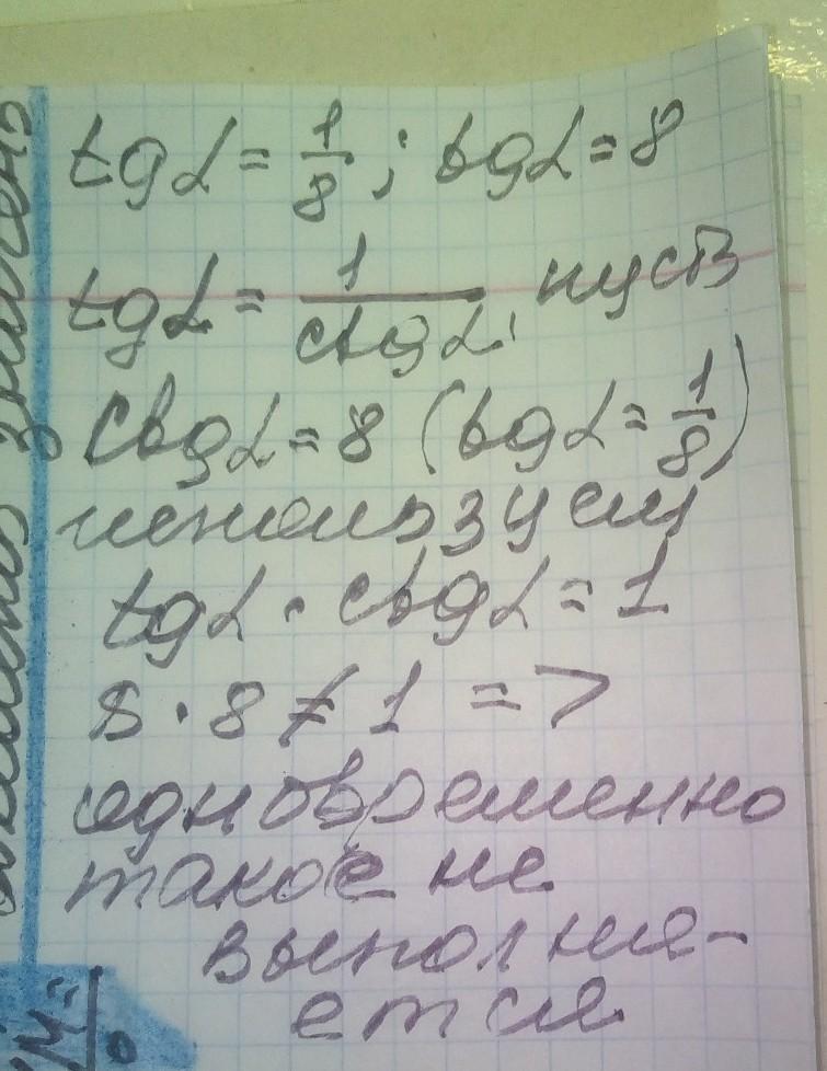 tgа=1/8 i tga=8 не могут. А вот сtgа=1/8 i tga=8 МОГУТ тк их произведение равно 1