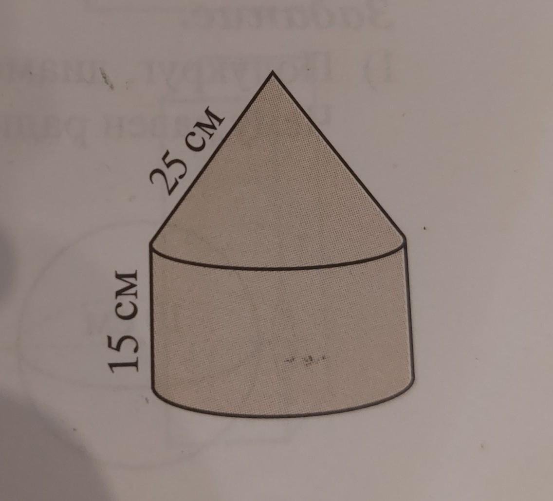 Коробка для конфет сделана из цилиндра и конуса, имеющими одинаковые основания. Высоты конуса и цилиндра равны. Пользуясь рисунком. найдите: 1) радиус; 2) длину окружности: 3) площадь основания коробки. Ответы пунктов 2) и 3) запишите с буквой пи и заменив пи на число 3,14.