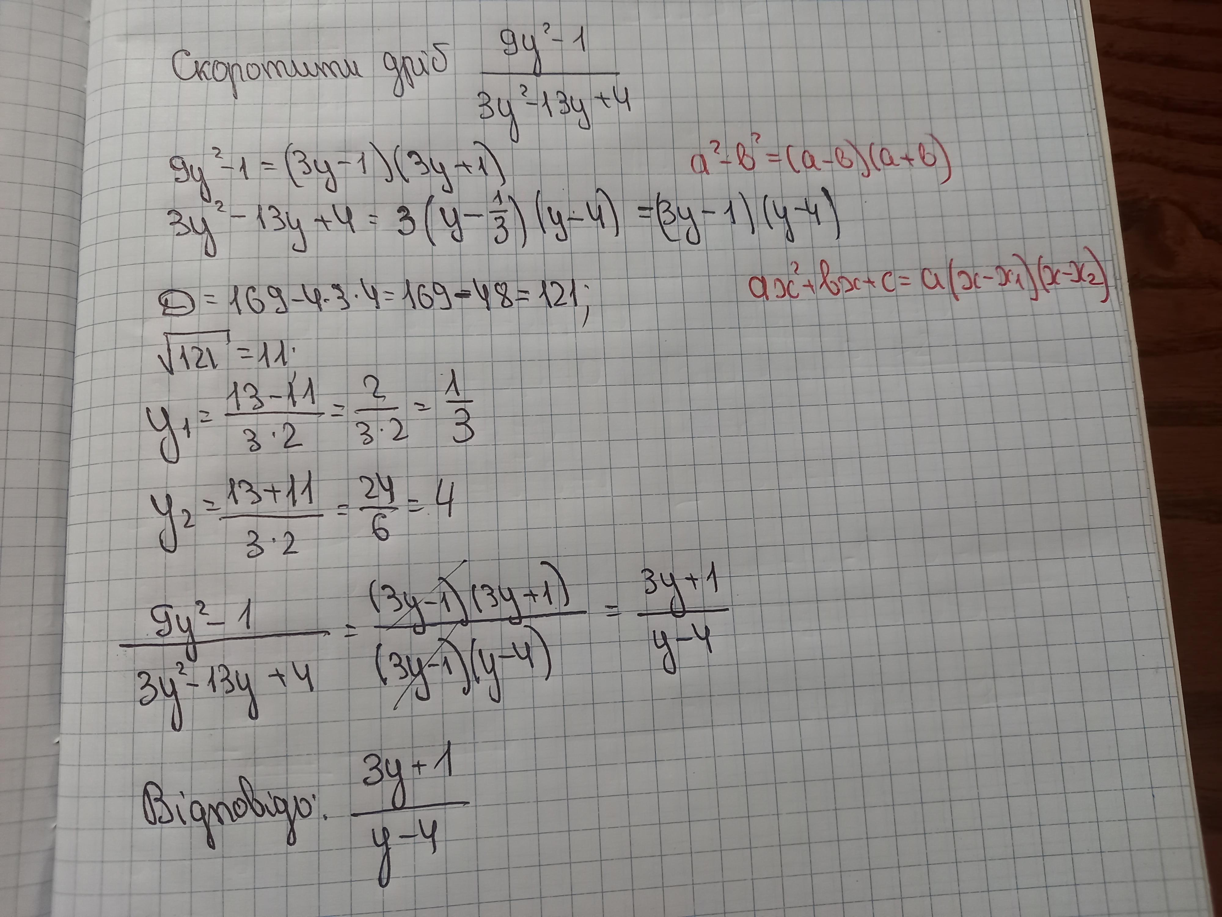 (3у-1)*(3у+1) / (3у² - 13у + 4) =