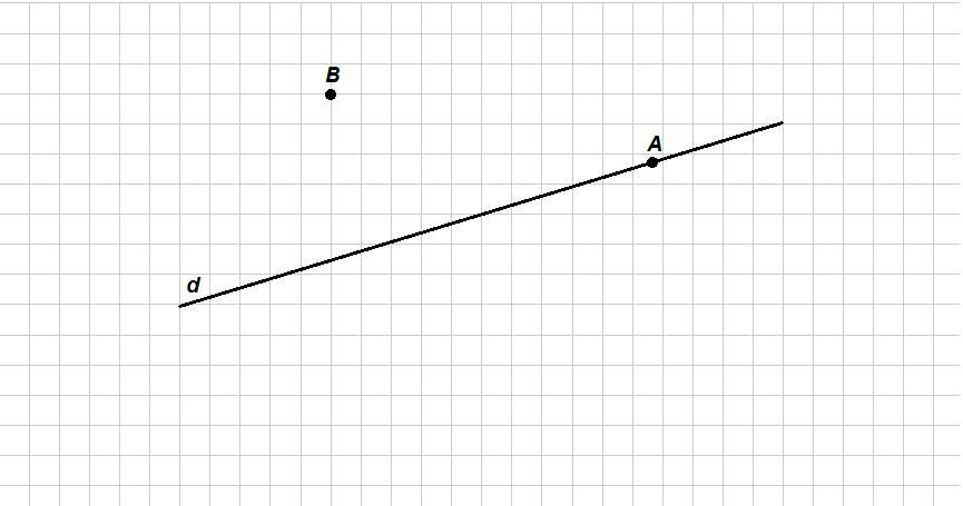 °. Проведіть пряму d, позначте точку А, що належить прямій d і точку В, що прямій d не належить. Зробіть відповідні записи