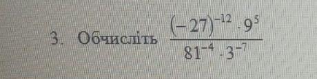 [ (- 27 )⁻¹² * 9⁵ ] / [ 81⁻⁴ * 3⁻⁷ ] = [ (( - 3 )³ )⁻¹² * ( 3² )⁵] / [( 3⁴)⁻⁴ * 3⁻⁷ ] =