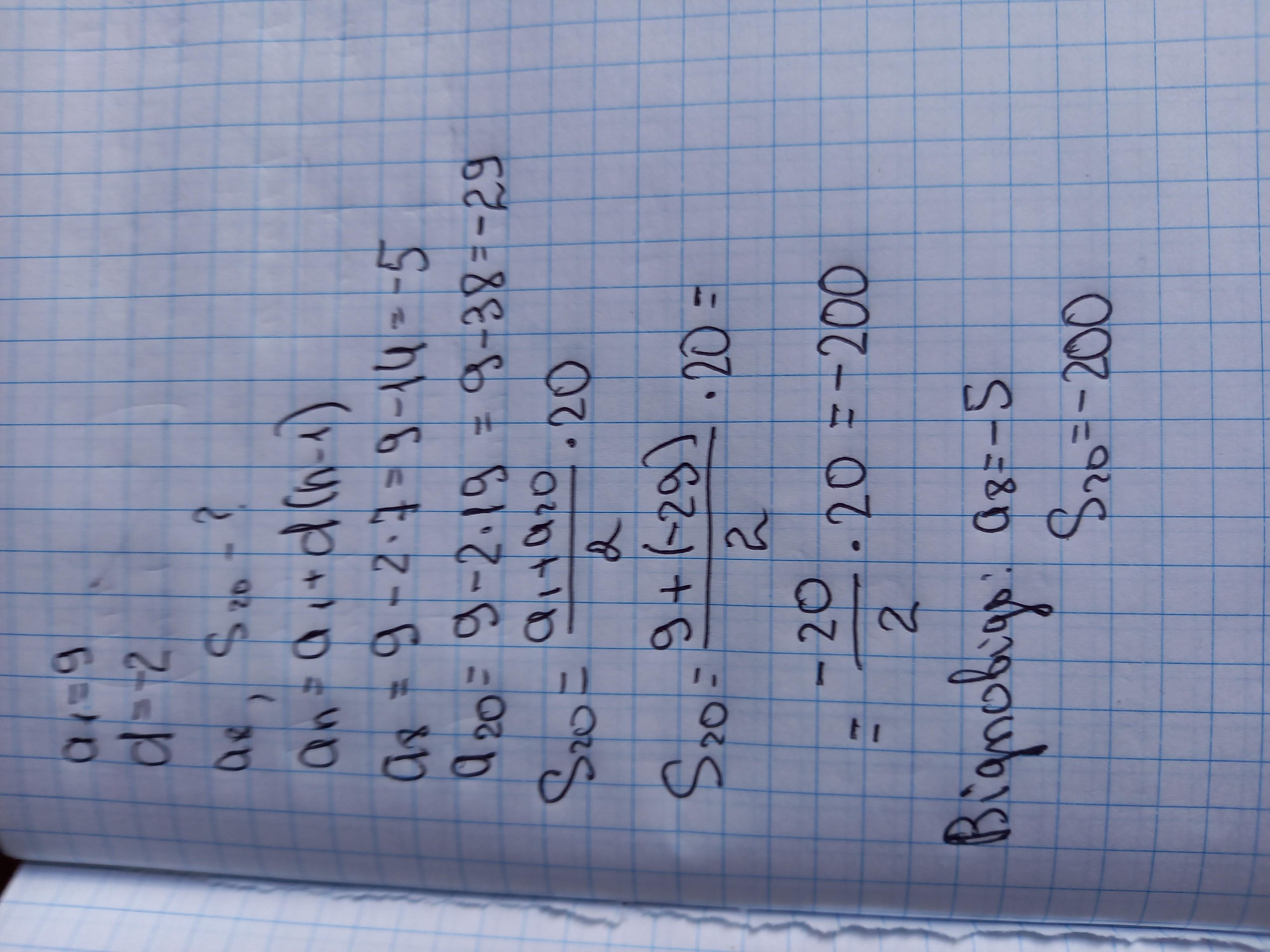 S₂₀ = ( a₁ + a₂₀)/2)) * 20 = (9 - 29) / 2)) * 20 = - 200