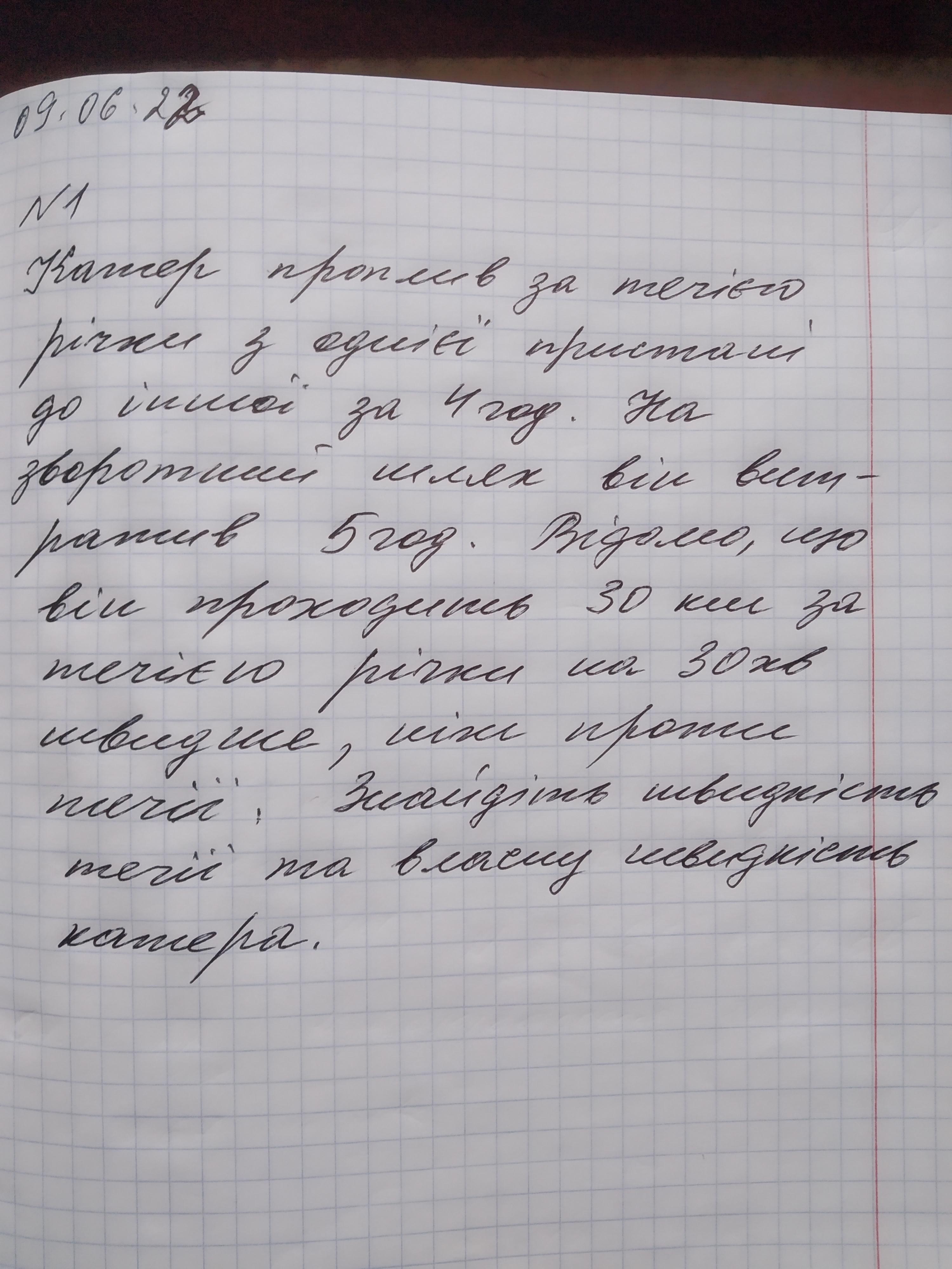 1 . Позначимо влас. шв. катера х км/год , а швидкість течії у км/год .