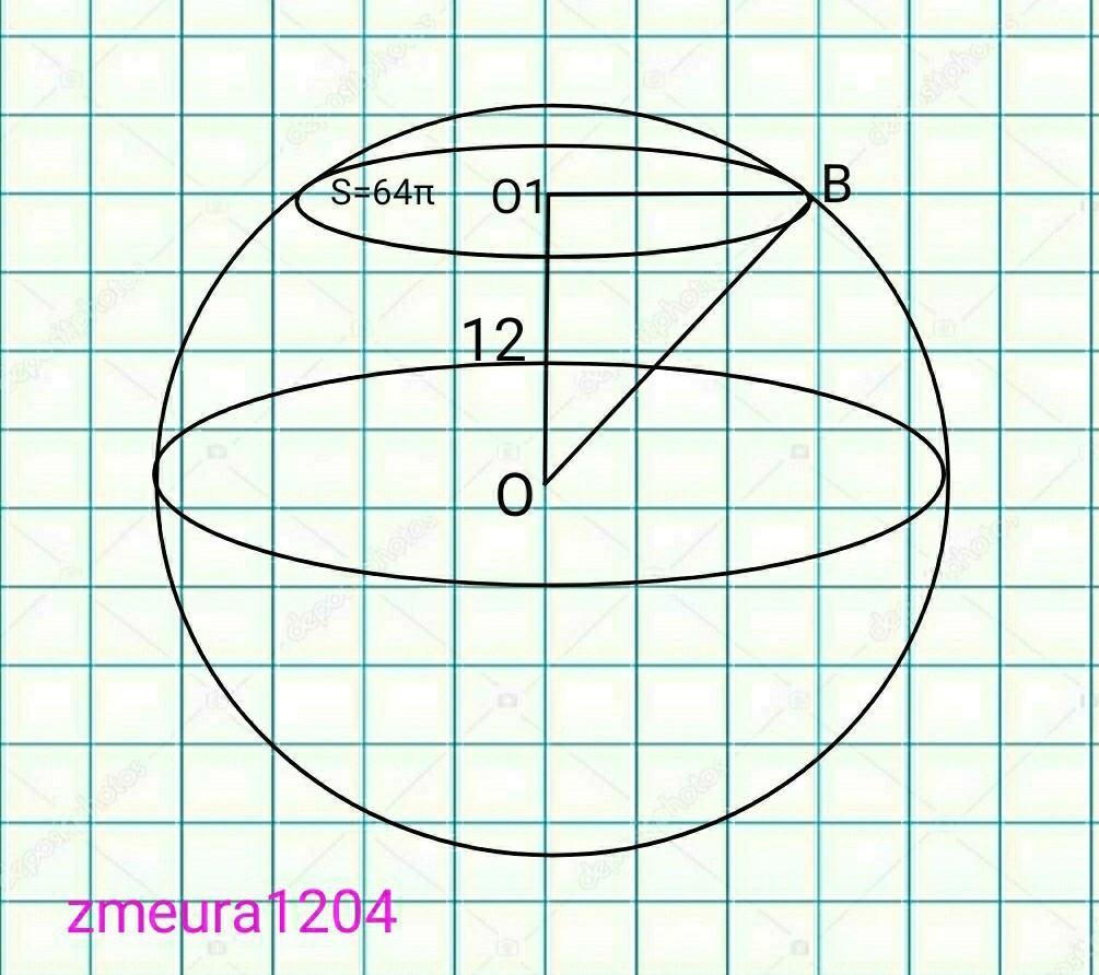 r=√(Sпер/π)=√(64π/π)=8см (О1В=8см)