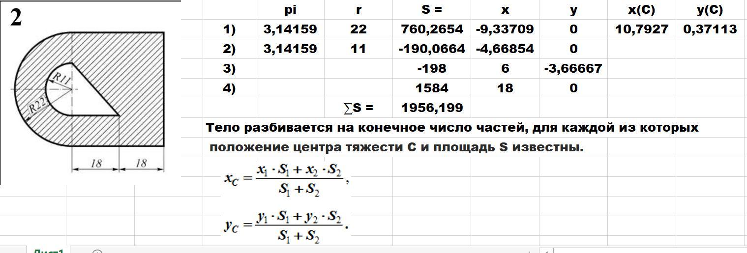 Центр тяжести полукруга х(С) = 4r/(3pi).