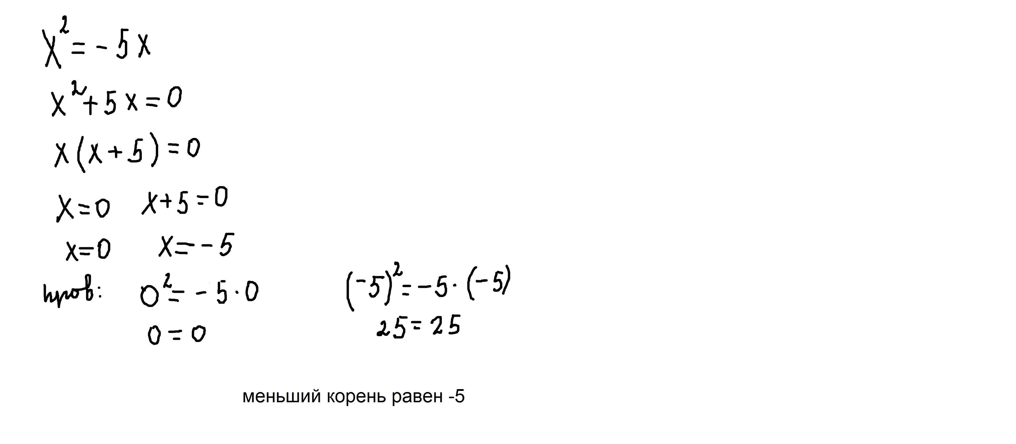 решите уравнение x^2=-5x. если уравнение имеет более одного корня, в ответе укажите меньший из них