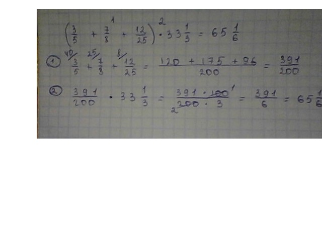 умножте сумму дробей (3\5+7\8+12/25)*33 1 /3