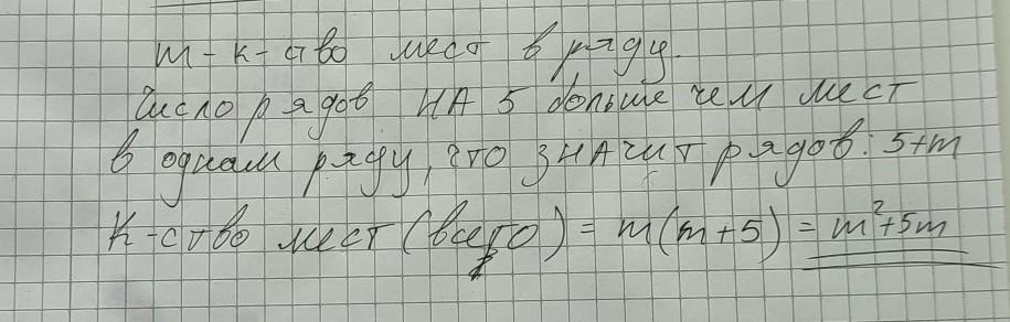 В каждом ряду зрительного зала m мест, а число рядов на 5 больше, чем мест в одном ряду. Сколько всего мест в зрительном зале?