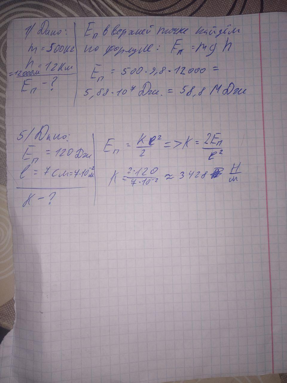 4. Частина ракети масою 500 кг вільно падає з висоти 12 км. Чому дорівнює її потенціальна енергія у верхній точці падіння?