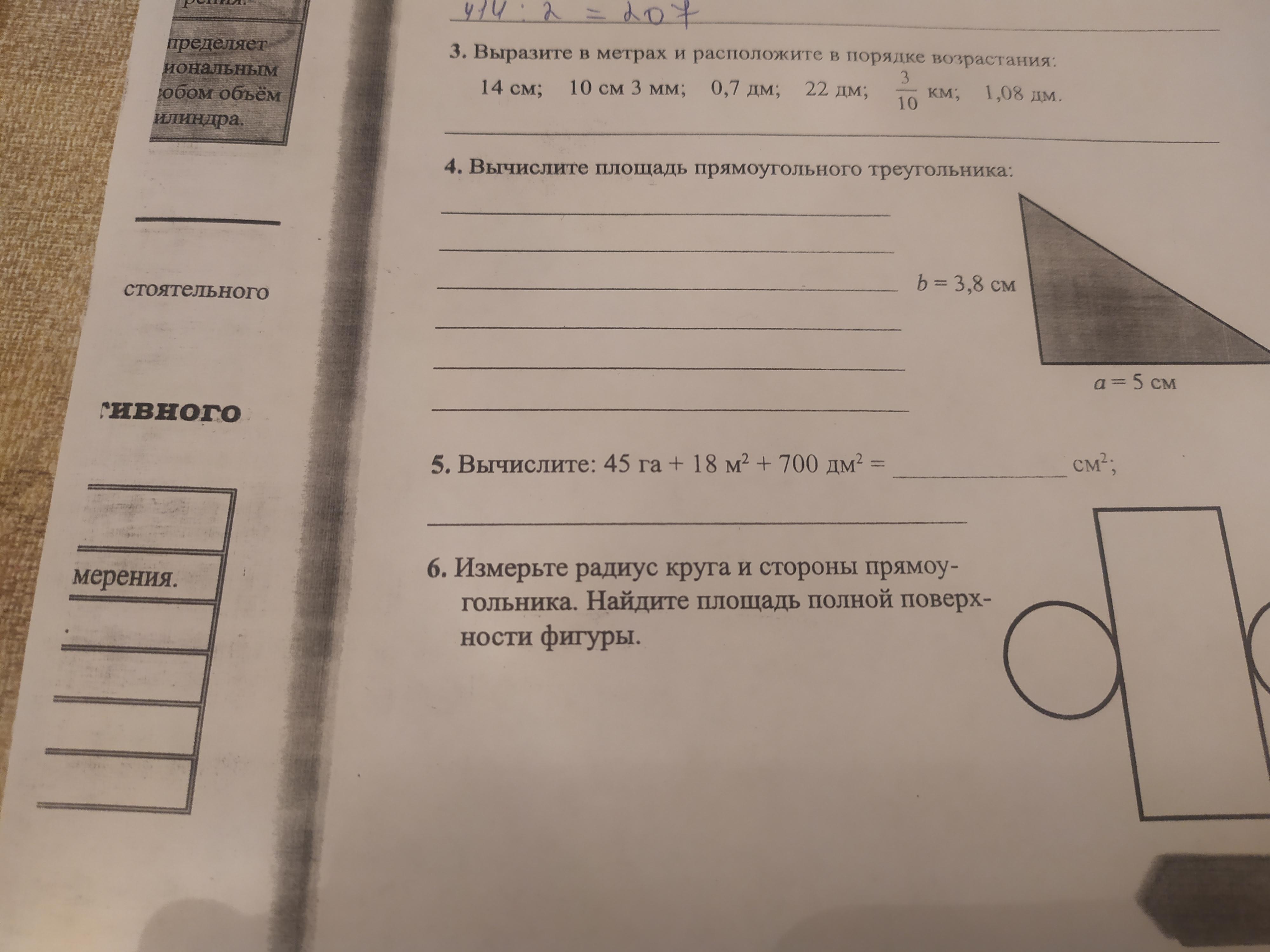 Задание номер 5 нужно вычислить и выразить ответ в квадратных сантиметрах даю 20 баллов