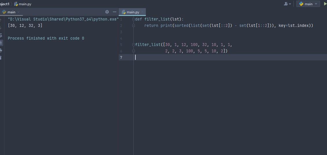 return print(sorted(list(set(lst[::2]) - set(lst[1::2])), key=lst.index))