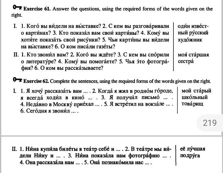 I. Ответьте на вопросы, используя данные словосочетания в нужной форме.
