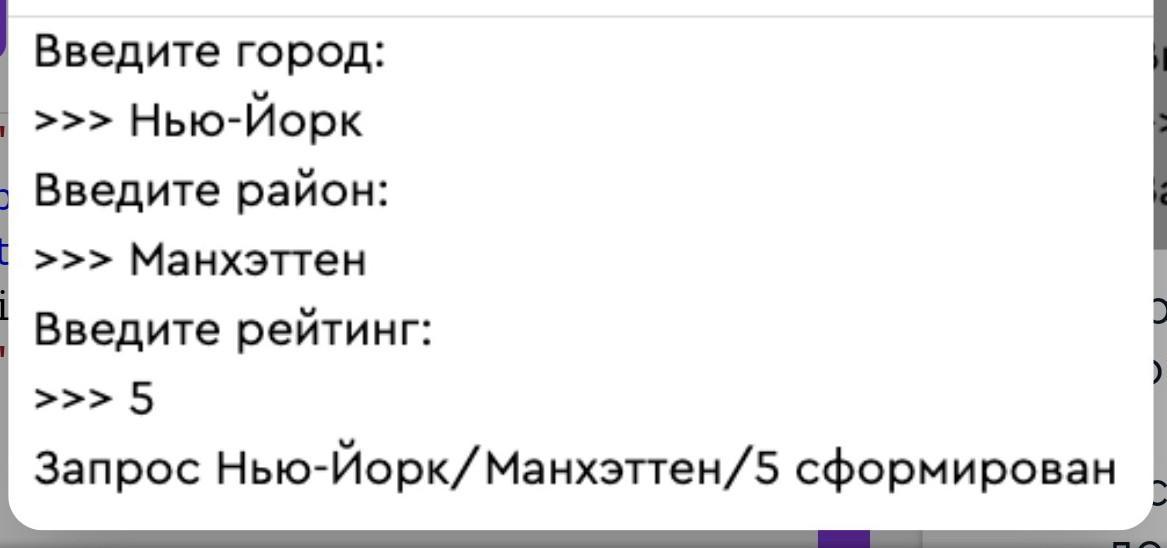 print("Запрос", city + "/" + region + "/" + str(rating), "сформирован")