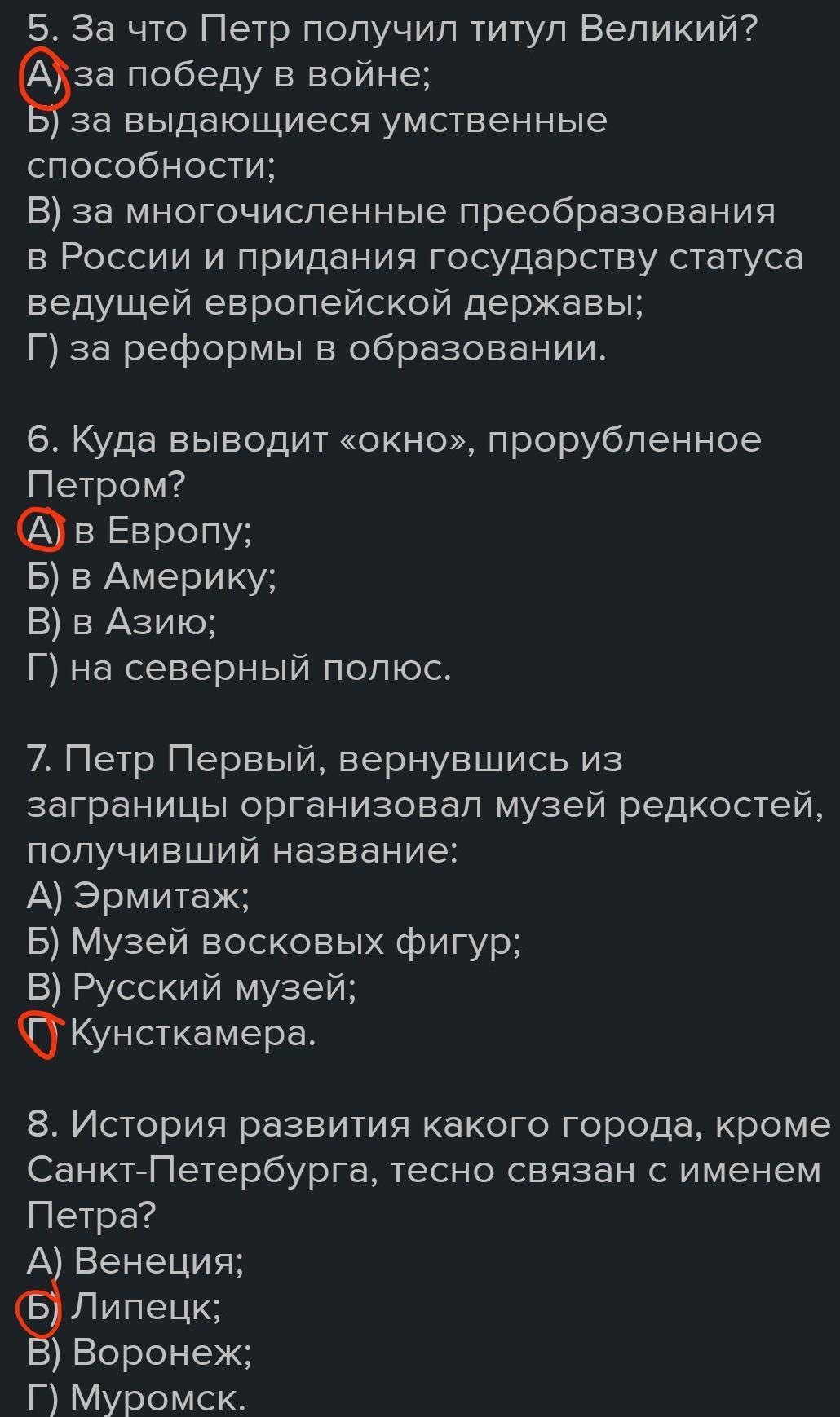 8. История развития какого города, кроме Санкт-Петербурга, тесно связан с именем Петра?